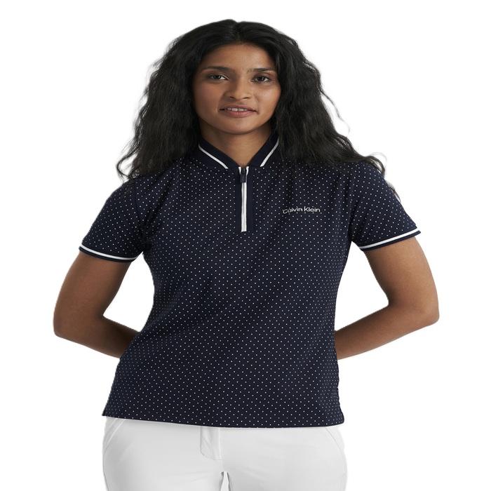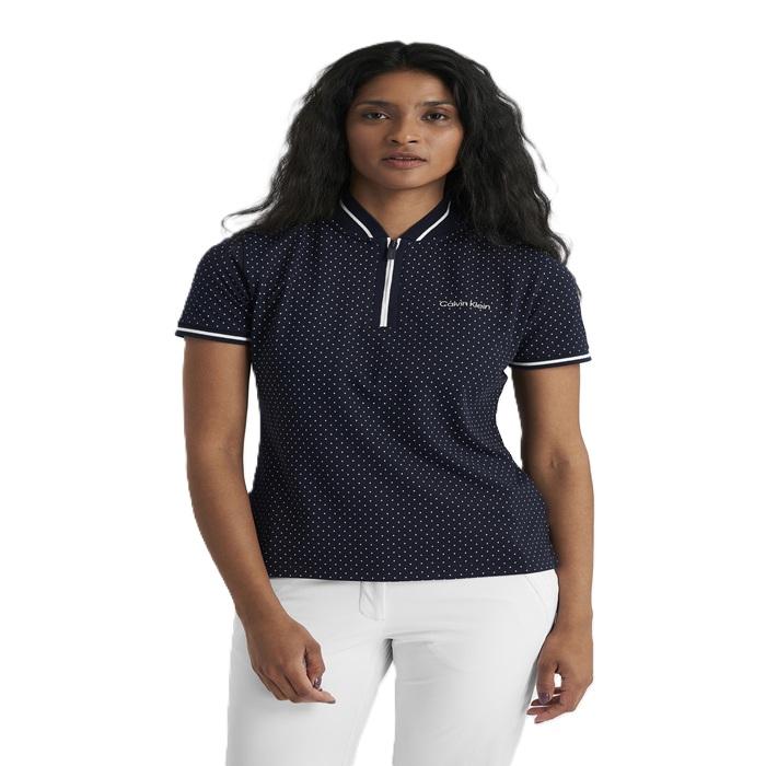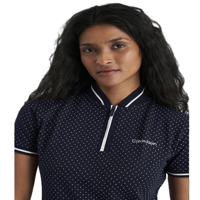 Geef je stijl op de golfbaan een speelse touch met de Camillia polo van Calvin Klein, voorzien van een subtiele stippenprint. Gemaakt van een luxe, milieuvriendelijke stof, zodat je ook op een duurzame manier voor je kleding kiest. De superzachte piquéstof is licht en ademend, en de opstaande kraag met ritssluiting zorgt voor een sportieve look.
