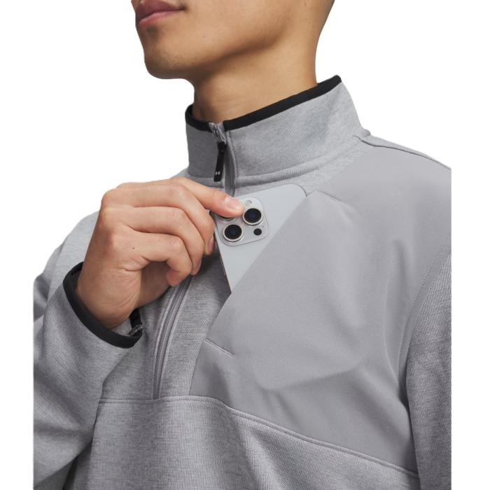 Under Armour heeft in de Drive Sweaterfleece het comfort en de warmte van een sweater gecombineerd met de prestaties van haar lichte, elastische fleece en de regenbescherming van een jack. Deze midlayer heeft een stevige borstzak met ritssluiting, is super waterafstotend en voorzien van geribbelde details bij de kraag, onderzoom en boorden. Dit item kun je het hele seizoen dragen.
