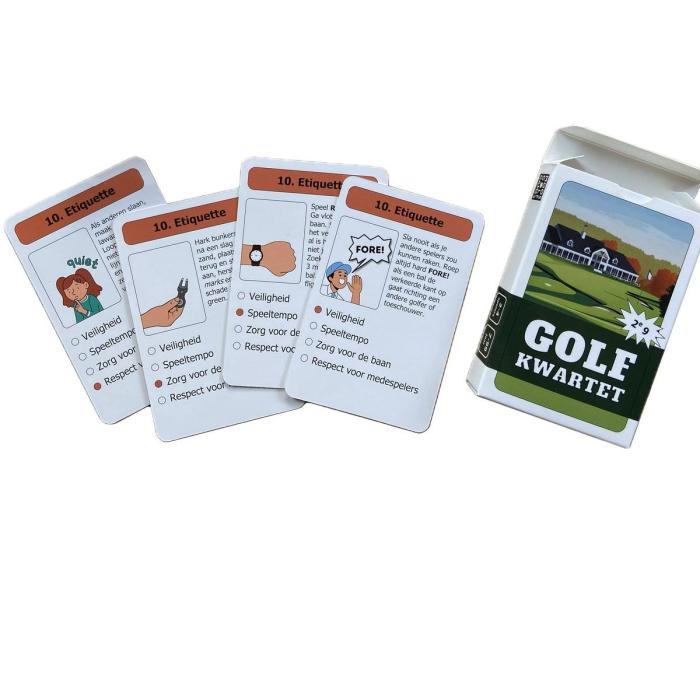 Dit educatieve golf kwartetspel is perfect voor beginnende golfers die spelenderwijs hun kennis willen vergroten, maar zeker ook leuk voor de meer ervaren spelers. Ideaal als cadeau voor golfers, als lesmateriaal op de golfclub of gewoon voor een gezellige spelletjesavond.
