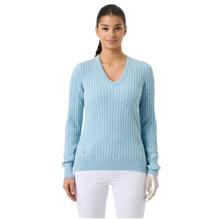 De Daily Madelene is een zacht gebreide pullover met V-hals van Daily Sports. Kabelbreisel met 5% kasjmier voor een exclusief gevoel.