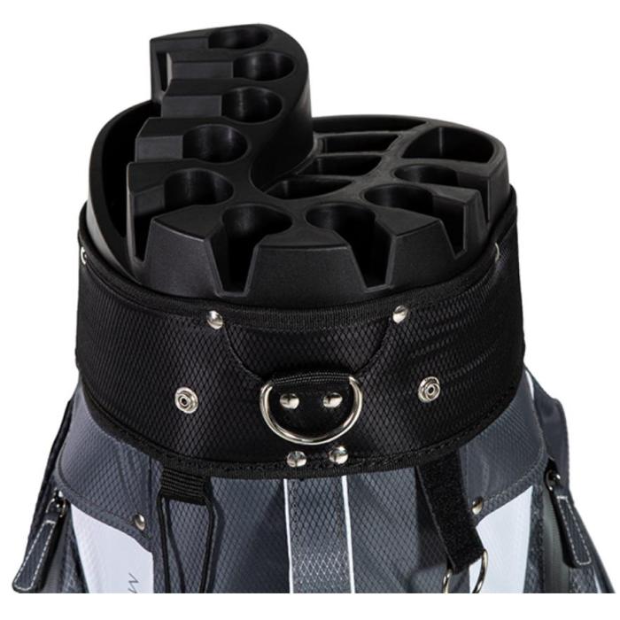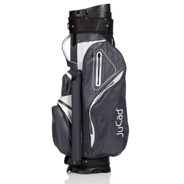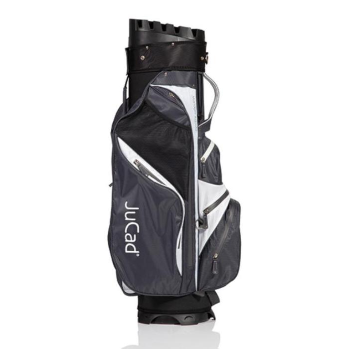 De Jucad Manager Aquata Cart Bag is de perfecte metgezel in alle weersomstandigheden. Waterafstotend materiaal en hoogwaardige ritsen zorgen voor een comfortabel spel. Een shaft-vriendelijke organizer houdt elk ijzer op zijn plaats en zorgt voor rustige, stressvrije rondes. Verder is de waterafstotende tas voorzien van tal van kleine en grote buitenvakken voor je golfuitrusting – één vak is 100% waterdicht voor kwetsbare en waardevolle spullen – een extra vak voor de JuCad Powerpack, een ruim koelvak, een extra oversized putterbuis en diverse handgrepen voor eenvoudige bediening in elke situatie. Een absolute alleskunner.