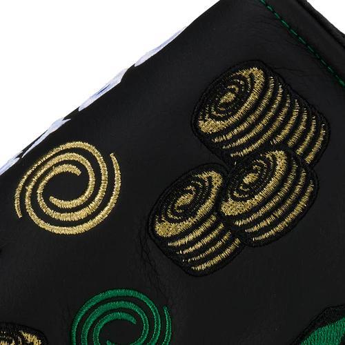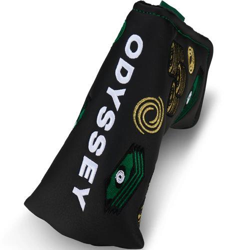 Mooie magnetische putterheadcover van Odyssey in een uitvoering met geld erop, geschikt voor blade putters. De binnenkant is met velours gevoerd en de achterkant heeft een magnetische sluiting.