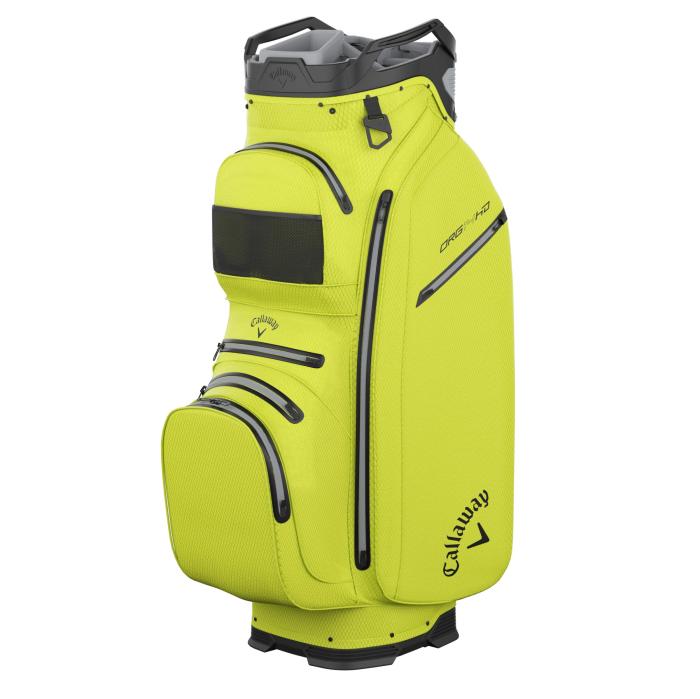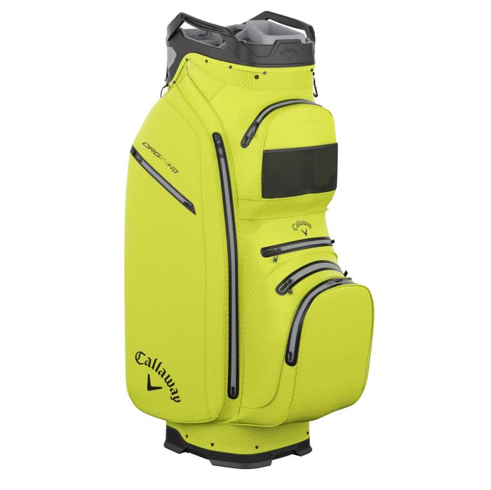 De Callaway Org 14 Hyper Dry Cart Bag heeft twee handige hengsels, een handdoek houder en een paraplubevestiging aan de bovenzijde. De tas wordt compleet gemaakt door een handschoenhouder en een regenkap. Door de verstelbare én zacht gevoerde draagriem is de tas comfortabel te dragen. Daarnaast tas is in een paar simpele stappen eenvoudig aan de trolley te bevestigen.