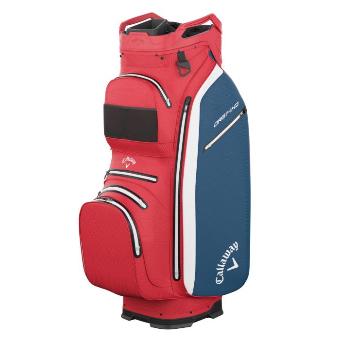 De Callaway Org 14 Hyper Dry Cart Bag heeft twee handige hengsels, een handdoek houder en een paraplubevestiging aan de bovenzijde. De tas wordt compleet gemaakt door een handschoenhouder en een regenkap. Door de verstelbare én zacht gevoerde draagriem is de tas comfortabel te dragen. Daarnaast tas is in een paar simpele stappen eenvoudig aan de trolley te bevestigen.