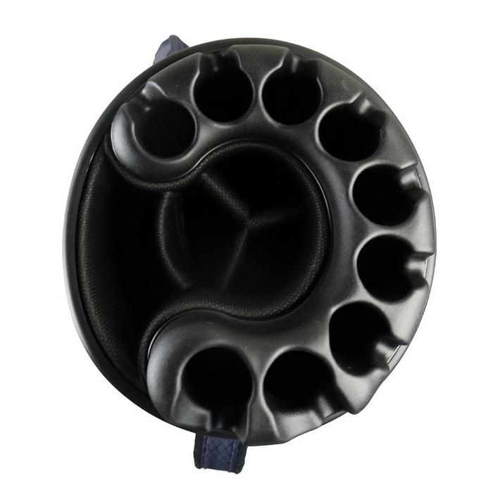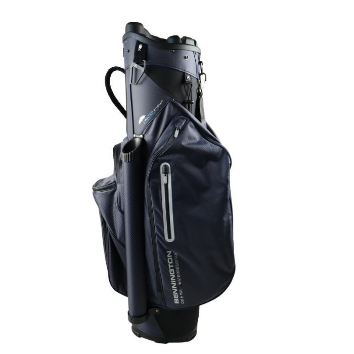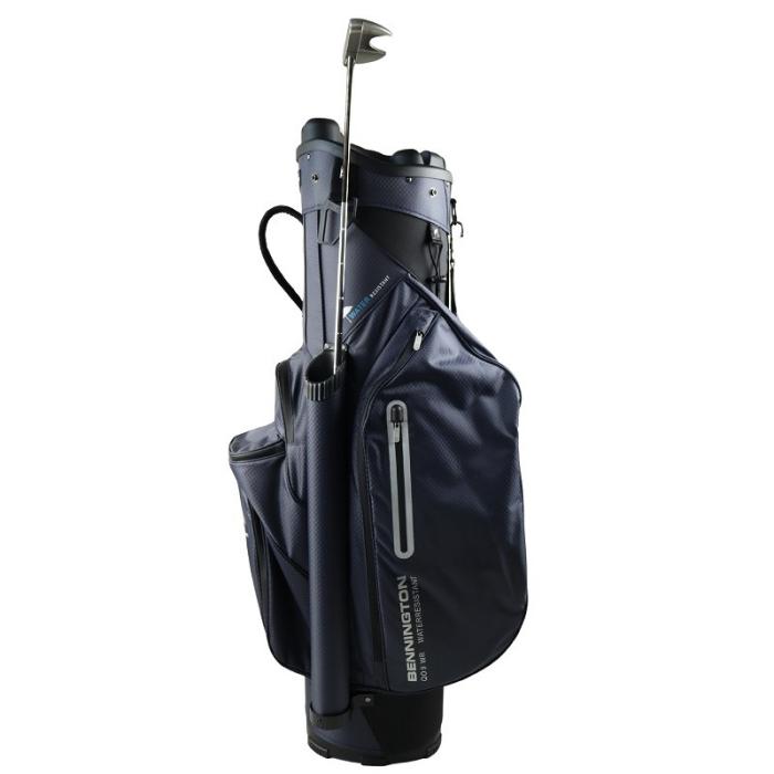 De lichtste QO 9 WR cart bag met gepatenteerd Quiet Organizer systeem wordt geleverd in een sportieve kleurcombinatie. Door de vakindeling tot op de bodem worden de ijzers optimaal gescheiden van elkaar en zullen de clubs niet beschadigen en geen lawaai maken.