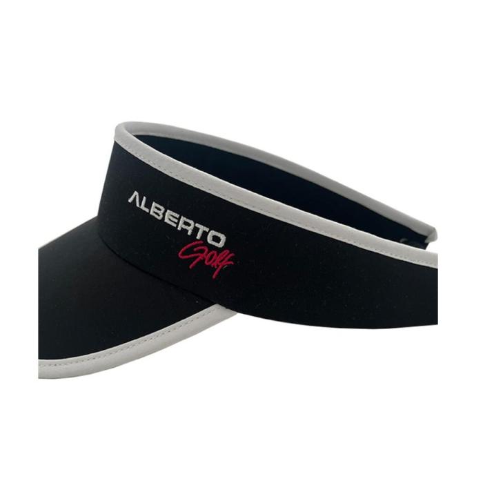 De Alberto Visor Golf Cap voor dames heeft een gekrulde elastiek aan de achterkant die zich aanpast aan de omtrek van je hoofd en is hierdoor one size. De linkerkant van de visor is voorzien van ‘Alberto Golf’ markering en de randen zijn voorzien van een witte streep.